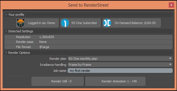 If you have the RenderStreet One subscription active in your account, you can choose whether to use it, or use the on-demand plan for your render.